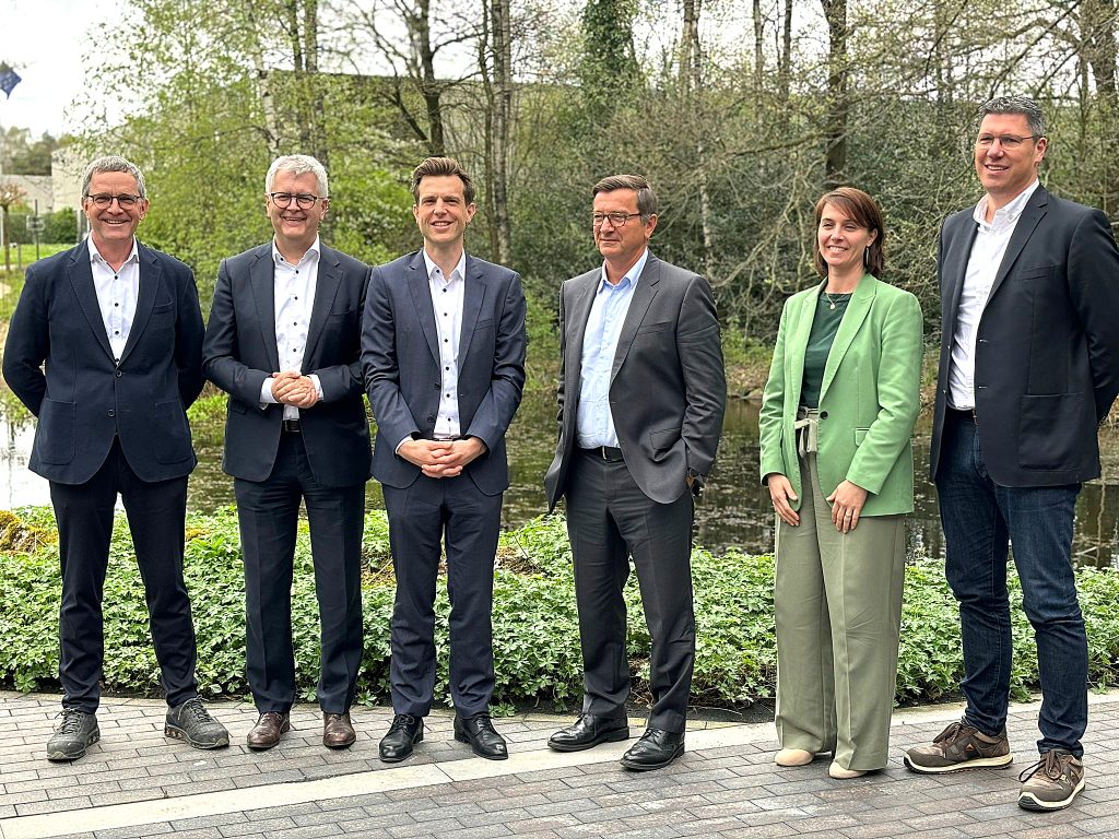 De gauche à droite: Bernd Vorhagen (General Manager NMC S.A.), Hubert Bosten (ancien CEO du Groupe NMC), Florent Pouzet (nouveau CEO du Groupe NMC), Miguel Kohlmann (Président du Conseil d’Administration), Catherine Noel (Vice-Présidente du Conseil d’Administration), Benoît Cormann (General Manager désigné NMC S.A.).